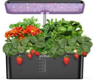 Buy On AmazonMUFGA 12 Pods Hydroponics Growing System, Indoor Garden with LED Grow Light, Plants Germination Kit, Mini Herb Garden with Pump System, Height Adjustable (No Seed), Ideal Gardening Gifts for Women